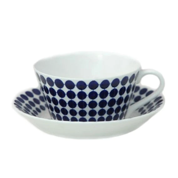 Diese Teetasse aus Gustavsbergs Adam-Geschirrserie definiert sich durch sein kobaltblaues Punktemuster. Schon im Jahr 1959 präsentiert, ist dieses Stig Lindberg Porzellan ein wahrer Klassiker des skandinavischen Designs. Auch in Zeiten fernöstlicher Massenproduktion wird in der hauseigenen Porzellanfabrik in Schweden nach traditioneller Methode aus feinstem Bone China gefertigt.