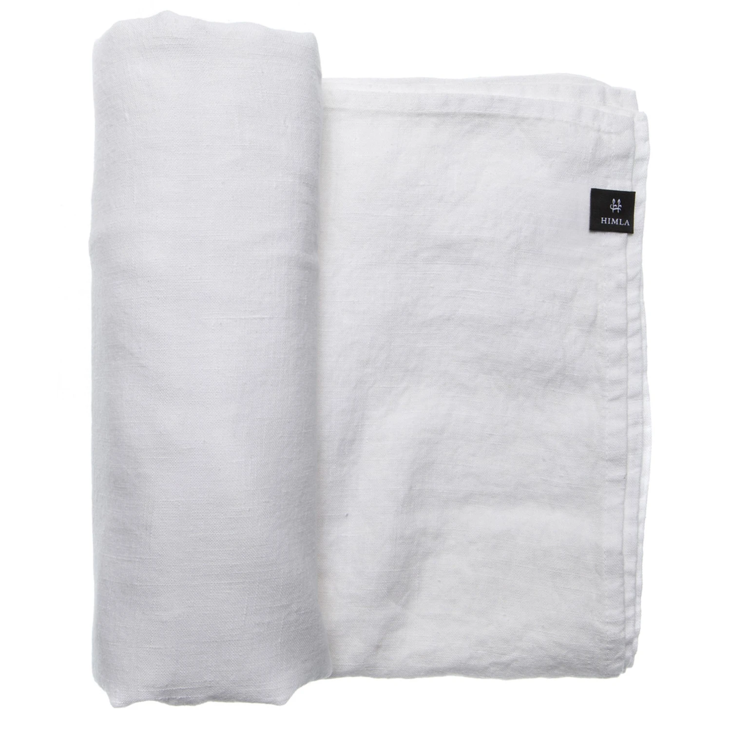 „Himla – The New Linen Look“ – die Botschaft des kleinen Emblems ist bei diesem weißen Leinen-Tischtuch wirklich Programm.